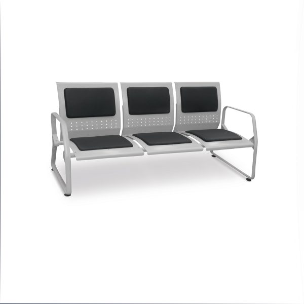 Longarina fabricada com conchas individuais para o assento / encosto em chapa de aço com opção de espuma injetada e fixada sobre chapa metálica