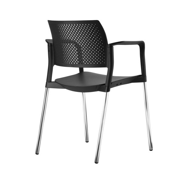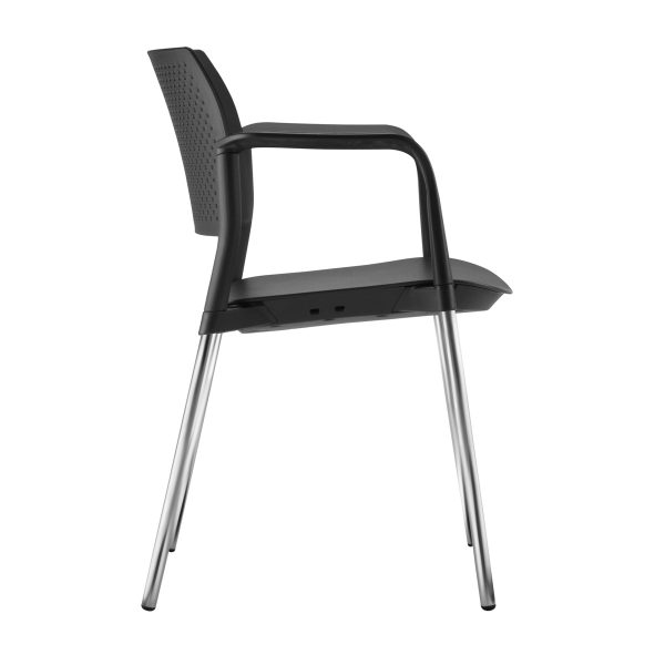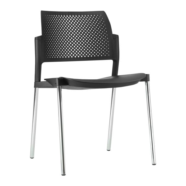 A cadeira plástica Kyos une o clássico ao moderno. Seu encosto inova ao trazer opções de modelo revestido, em tela ou plástico, garantindo modernidade e equilíbrio de temperatura. Disponível nas versões com prancheta, base fixa, com e sem apoio de braço, é uma linha completa para coletividade.