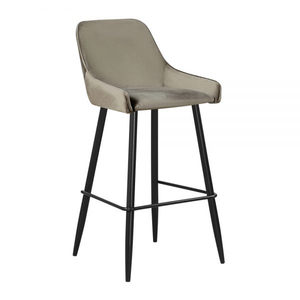 Banqueta com assento estofado revestido em tecido veludo Base em aço pintado a pó.