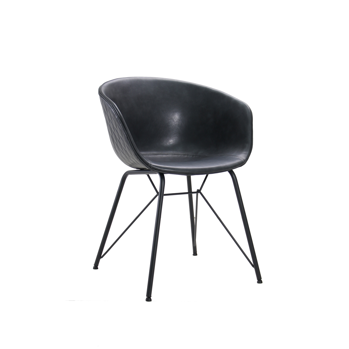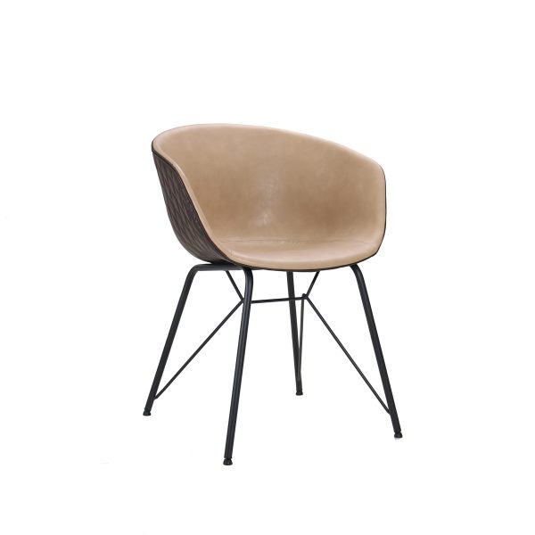 Cadeira estofada em poliuretano (PU) bicolor com detalhe na lateral em matelassê